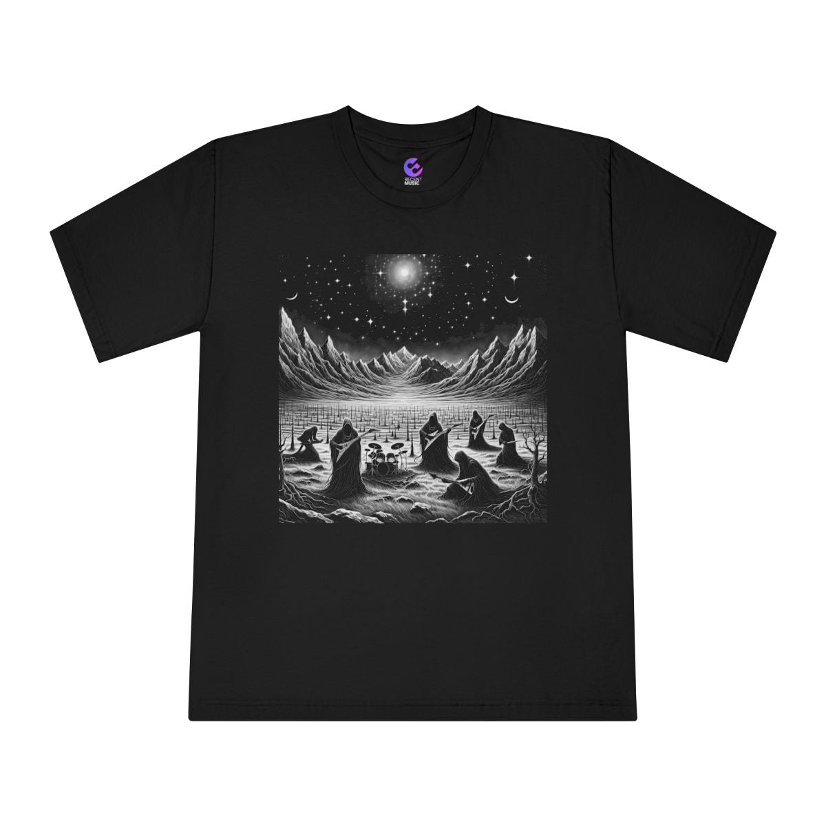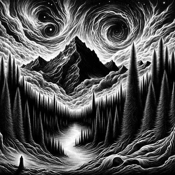Ambient black metal is a subgenre that merges the raw, aggressive textures and dark atmospheres of traditional black metal with the ethereal, atmospheric layers typical of ambient music. The result is a soundscape that evokes cosmic vastness or bleak, natural landscapes, often characterized by droning guitar work, hauntingly slow to mid-paced tempos, and raspy, shrieking vocals that seem to echo from afar. Synthesizers and programmed elements often play a significant role, creating a backdrop of interstellar or otherworldly ambience. Bands within the genre, such as Darkspace and Wolves In The Throne Room, capture this fusion with sprawling compositions that are as likely to invoke contemplative stillness as they are to drive forth with the genre's intrinsic intensity and fury.