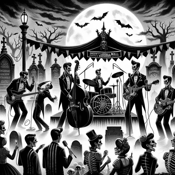 Deep psychobilly fuses the twang of rockabilly's reverberating guitar riffs with the dark, pulsing rhythms of punk and elements of horror. It takes listeners on a raucous ride, characterized by a frenetic tempo, slap-bass vigor, and a haunting atmosphere wrought with themes of the supernatural and macabre. Bands in this subculture often dress in stylized, retro fashions that channel the 1950s, while adding a sinister edge befitting of their musical ferocity. This high-octane genre maintains the raw energy and DIY ethos of its punk roots yet distinguishes itself through a distinctive blend of retro nostalgia and eerie storytelling, often executed with a tongue-in-cheek flair. Deep psychobilly creates an infectious and slightly unsettling sound that's impossible to ignore, commanding a devoted following that thrives on its unique brand of musical mayhem.