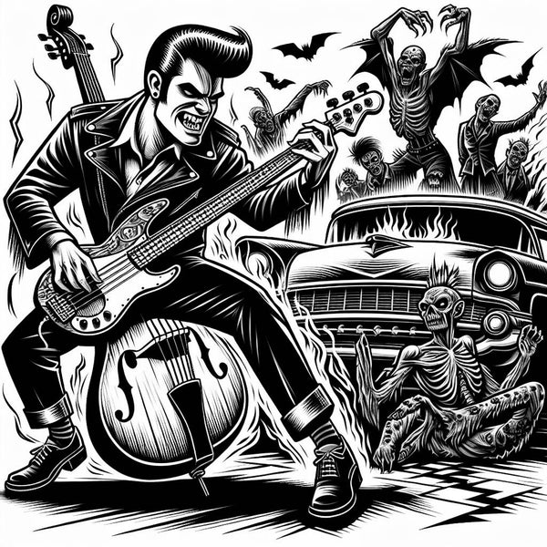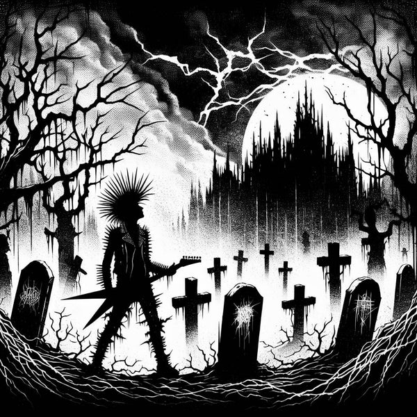 Horror punk is a genre that emerged in the late 1970s and 1980s, characterized by its dark, campy aesthetic and fusion of punk's energy with elements of horror movie soundtracks and classic rockabilly. Musically, horror punk is defined by its fast-paced rhythms, prominent use of distorted guitars, and often, a focus on keyboards or organs to create a spooky, atmospheric sound. Vocals frequently incorporate growls, screams, and other unsettling techniques to enhance the genre's eerie atmosphere. Drawing inspiration from B-movies, Gothic literature, and supernatural folklore, horror punk's cultural significance lies in its celebration of the macabre and the unknown, appealing to fans of the darker side of life. While sharing similarities with psychobilly and gothic rock, horror punk's irreverent, tongue-in-cheek approach sets it apart, often incorporating elements of camp and humor into its music and aesthetic.